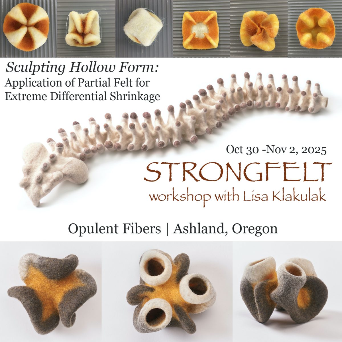 Participants will explore the variables in the wet felting process of coercing wool fibers through fabrics of various structures, fiber types, densities and surface design to develop unique surface texture and design modifications.