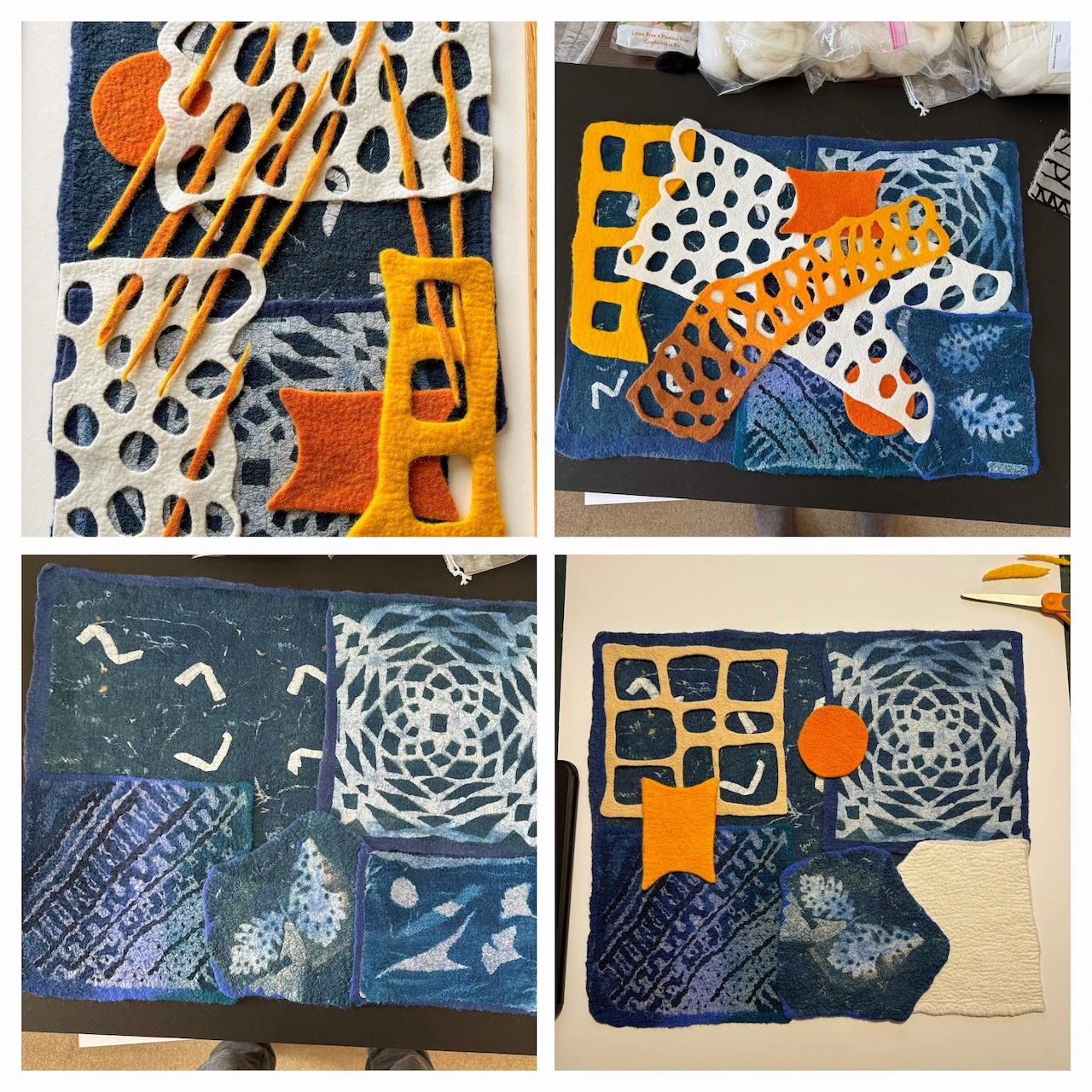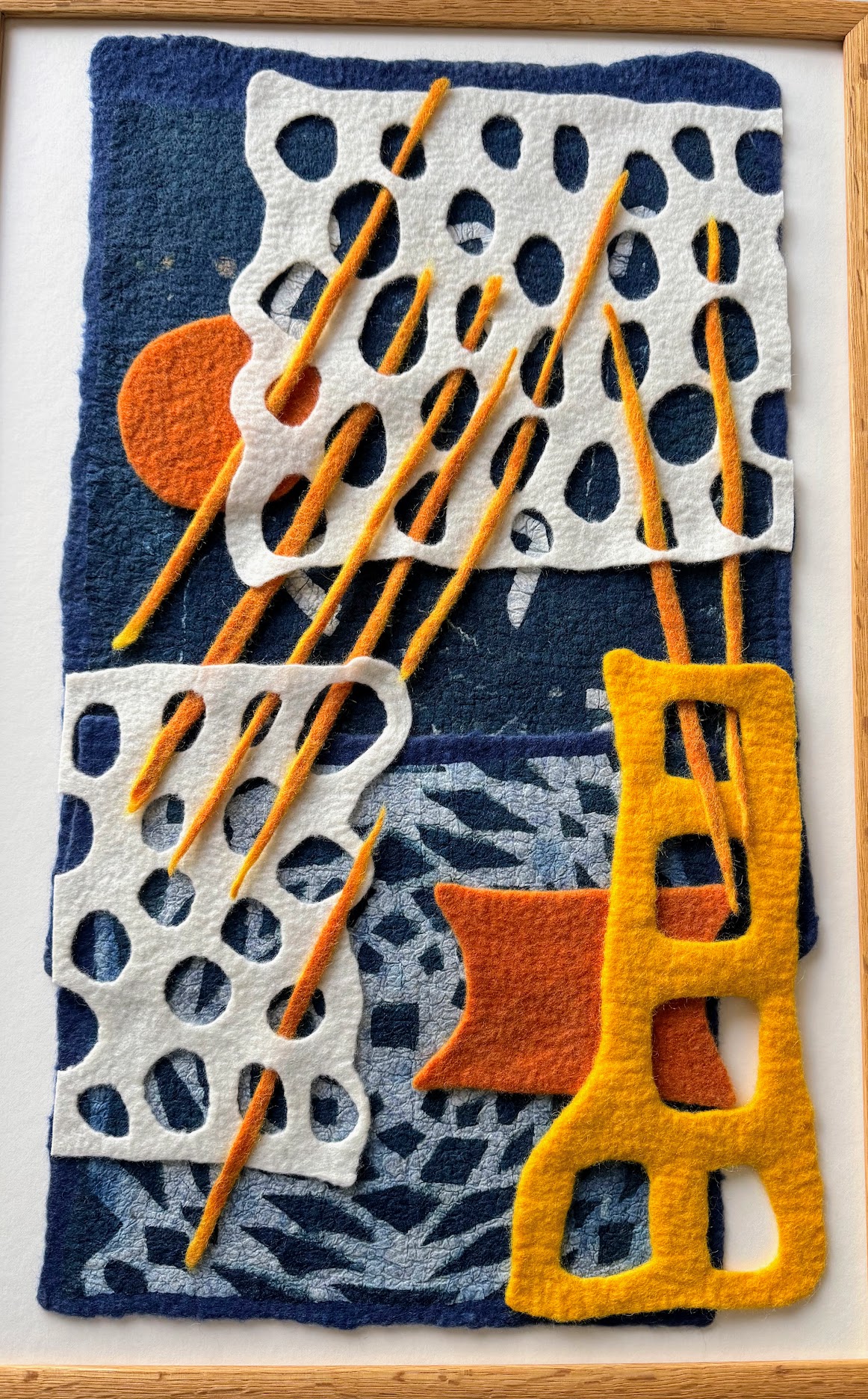 Inspiration: I learned how to use cyanotype on paper and silk in 2025, and in 2026, I wanted to make a collage of the pieces I had made. Arranging the pieces took a lot of time. Making the cyanotype pieces only took 35 minutes each, on average. It was an anxious 35 minutes of my time. It was worth it.