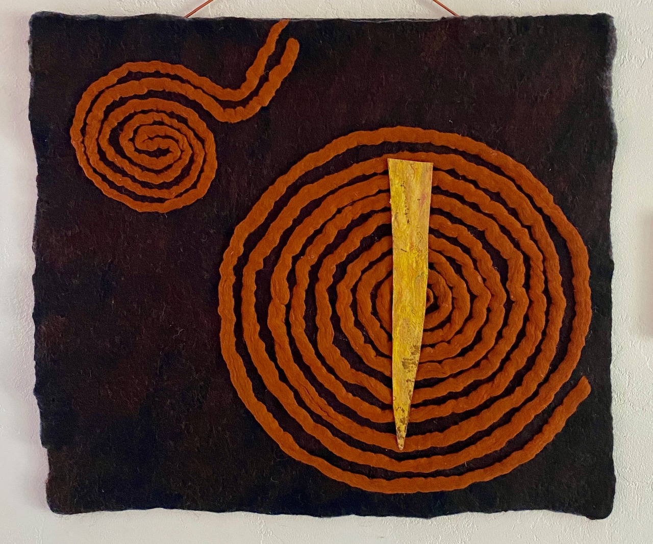 Inspiration:The Sun Dagger marks the time of the equinoxes and the 18.6 Lunar Cycle. Created by the Ancestral Puebloans of Chaco Canyon, the spirals were carved on a rock slab in a precise location on Fajada Butte where the sun shines through a fissure formed by the surrounding rock slabs.  This astronomical observation by the Chocoans is truly a work of art as well as a marking of the passage of time.