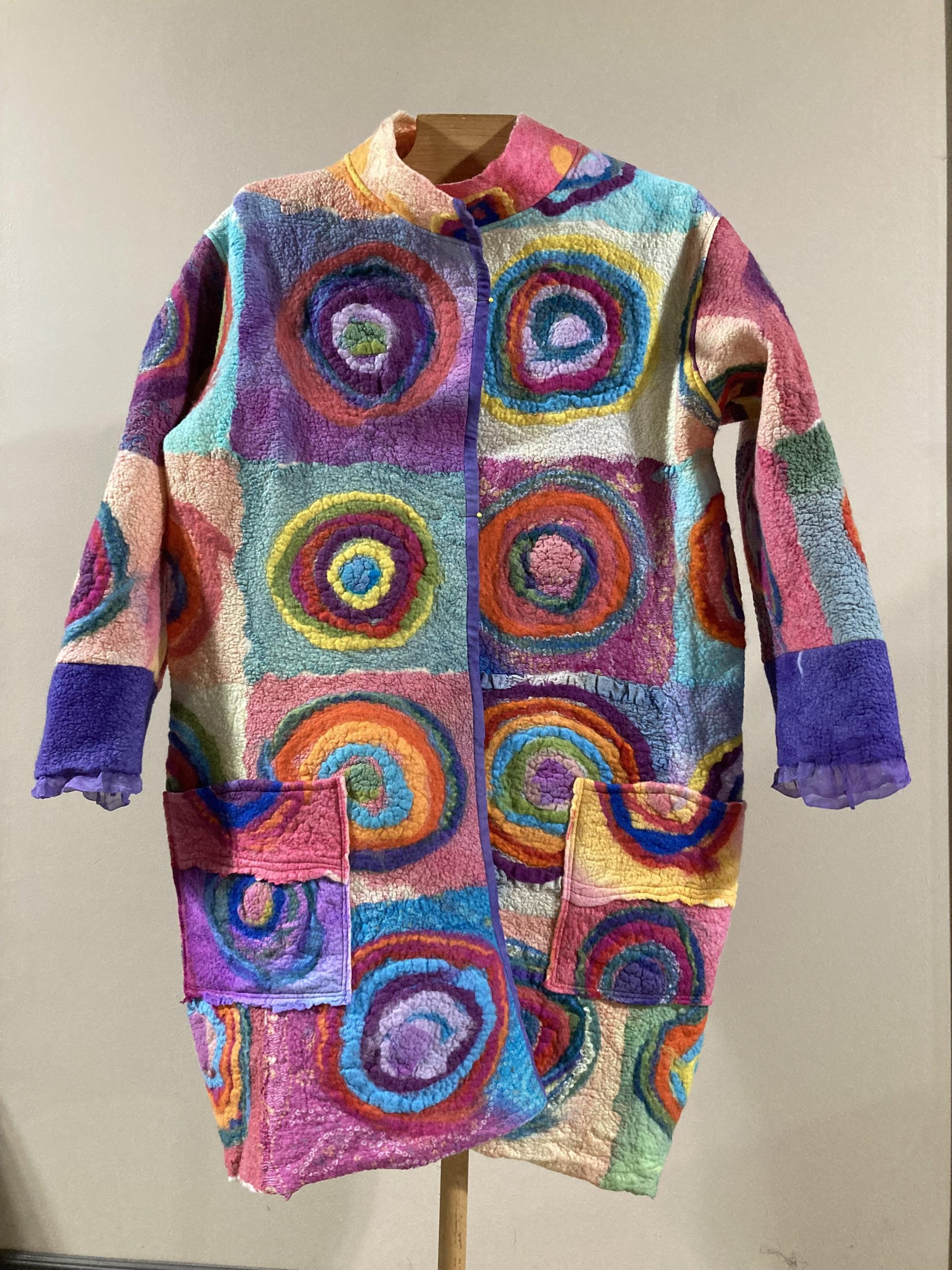 Chris lives and felts in the Niagara Region of Ontario, Canada. When she's not creating wearable felt art in her studio, she is teaching felting at her local fibre shop. Once in a while she creates some purely artistic felt, and her work has shown (and sold) through galleries in Southern Ontario. You can find her wearables at local artisan shows and select shops in Niagara and on her website: chrisliszak.com