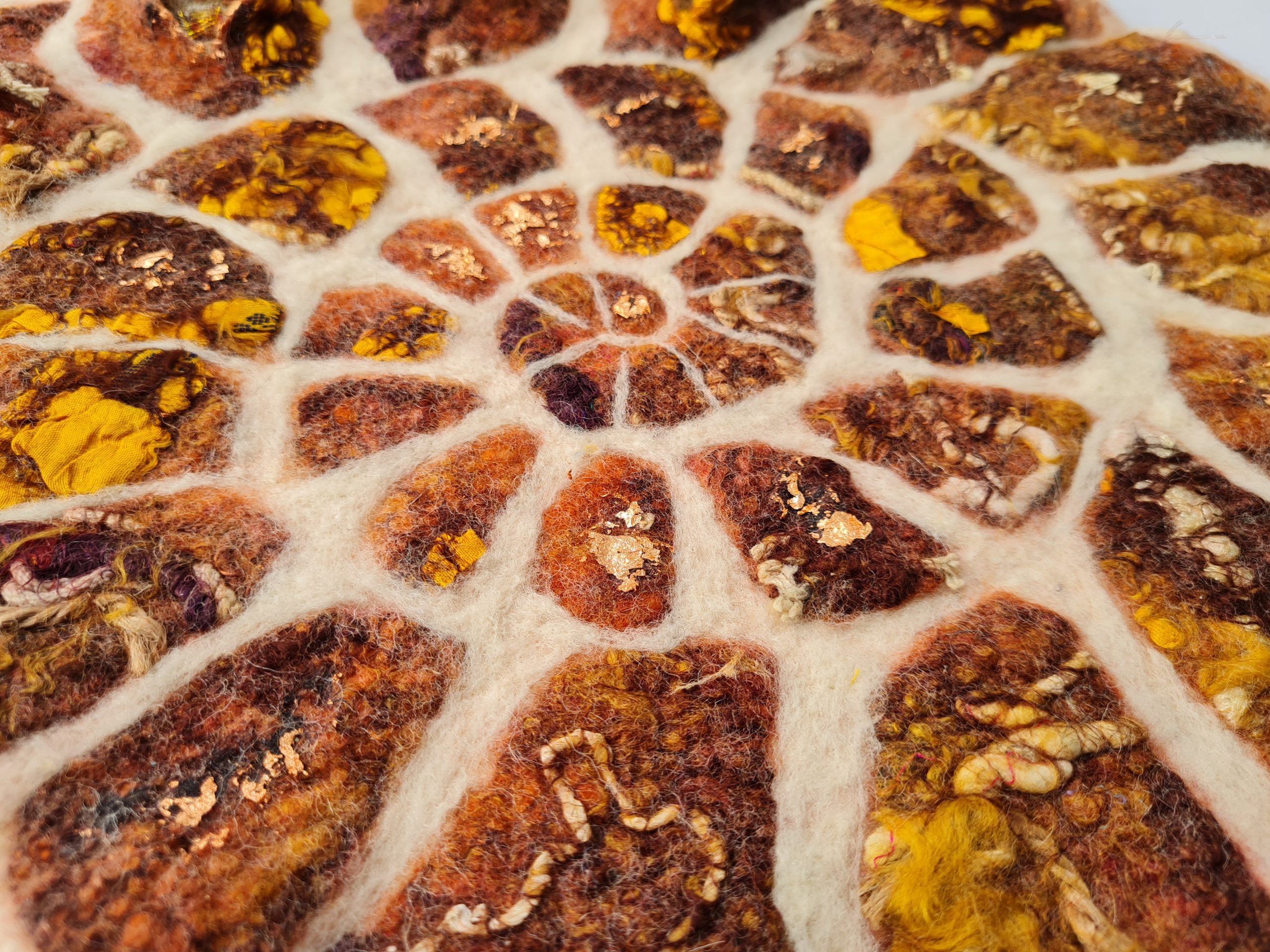 By using wool and a barbed needle or soap and water, I discovered about 20 years ago that I could create wonderful pieces of art. I grew up on the Yorkshire coast and have always loved being outdoors taking photographs. I use my photographs and treasures from the natural world as inspiration for my artwork, looking at colours, different fibres and textures to create both wearable art, sculptures, and more recently wool paintings.