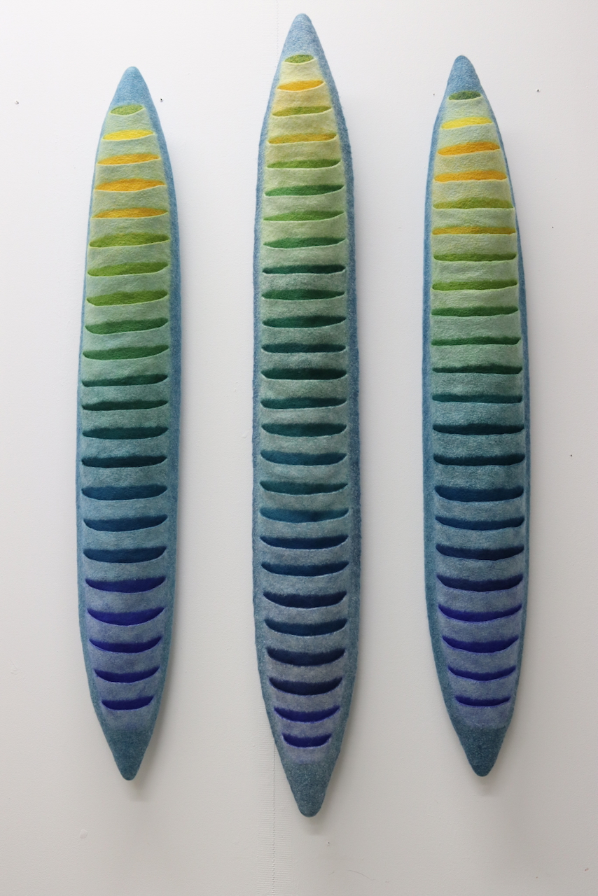 I started felting in 2008 and was immediately captured by the amazing qualities of wool. I am driven by a deep fascination and love of this natural material which never ceases to surprise and impress with its endless possibilities - creating soft and light textiles, but also giving solidity to textured, sculptural work. My main focus is working with 3D projects, but my workshop program also includes clothing, accessoires and interior items. The wonderful diversity of nature's textures, color combinations and forms is a great inspiration for my work. I am a juried member of Norwegian Feltmakers' Association (Norske Filtmakere).