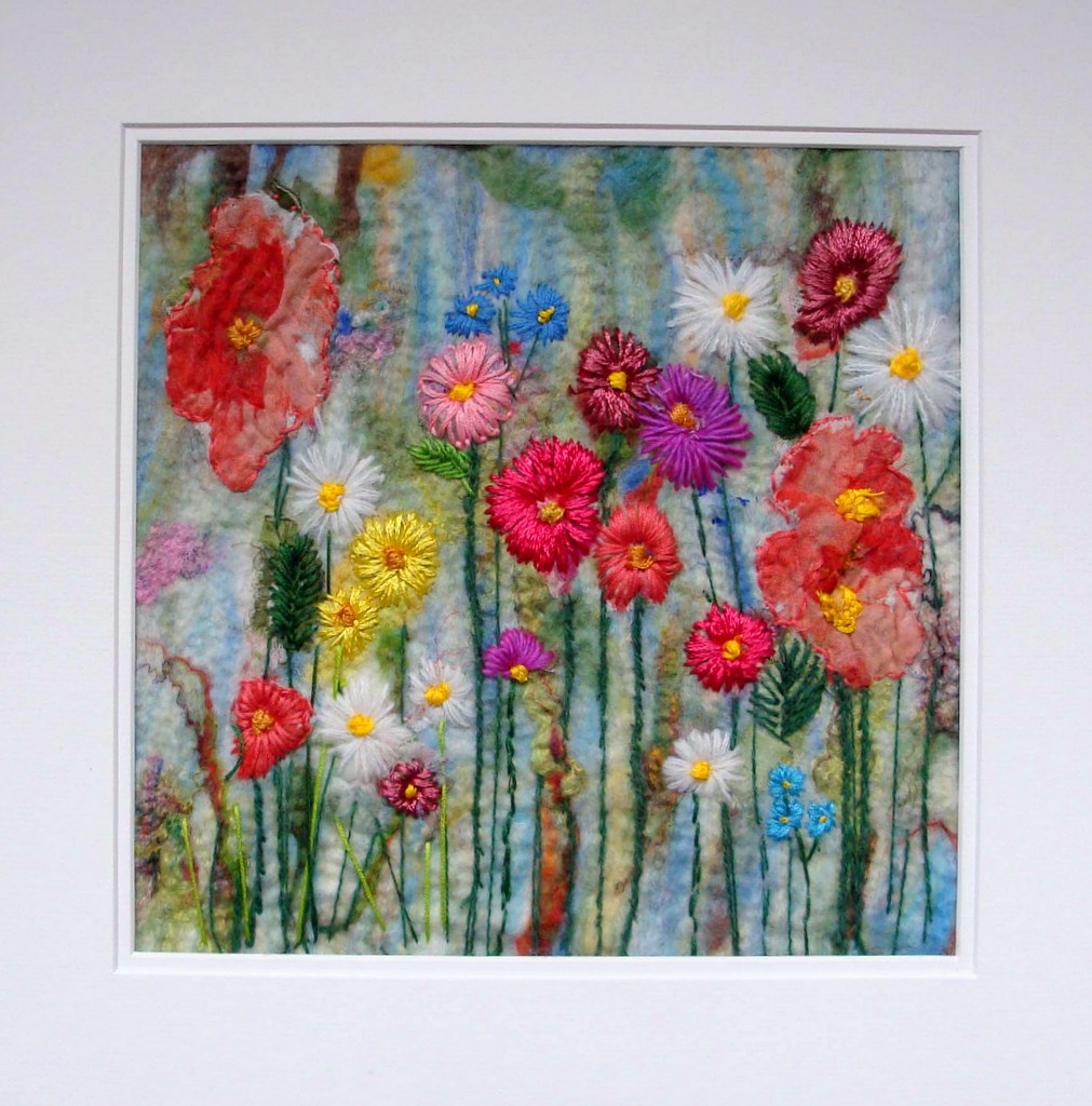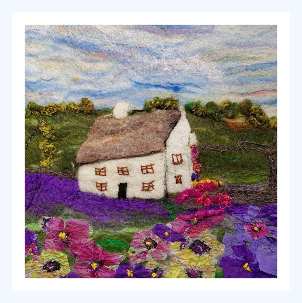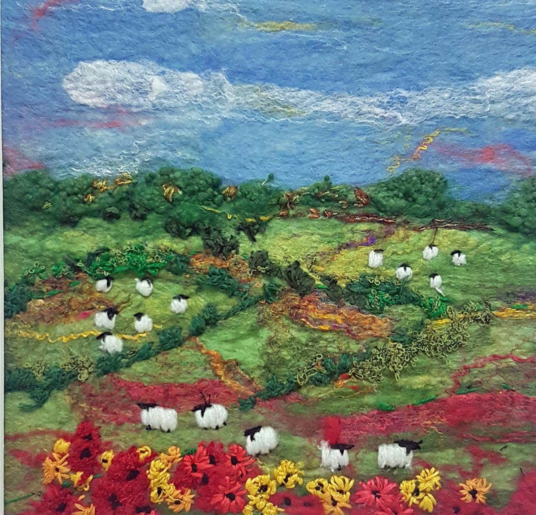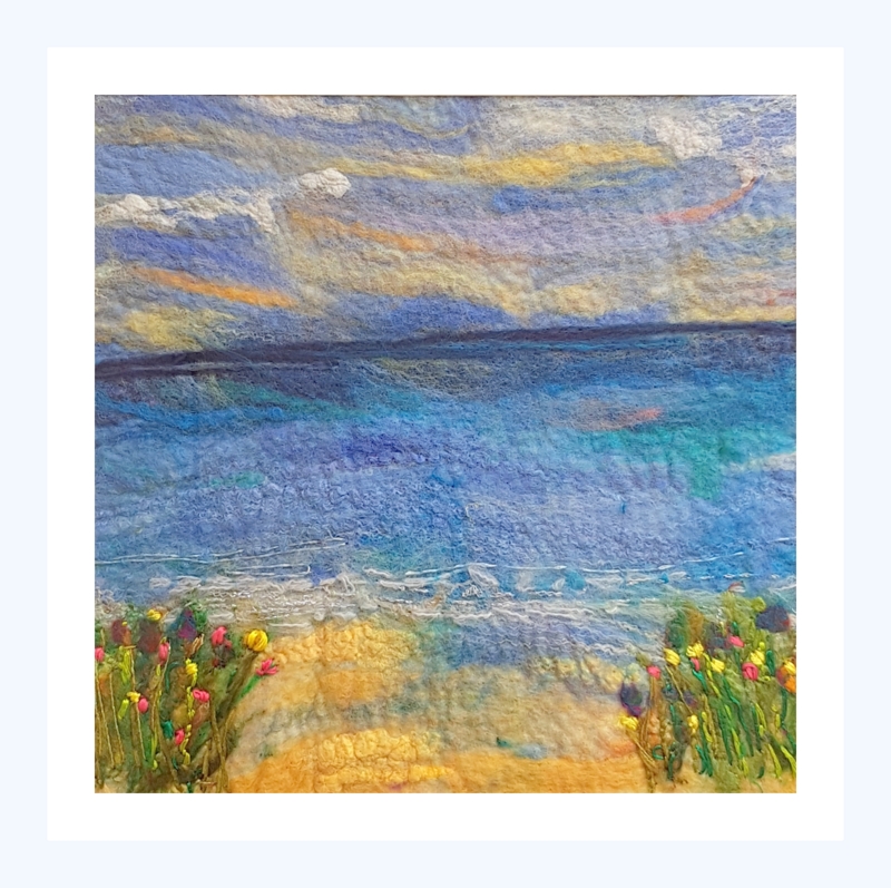 I am a felt artist from the North East of England . My tutor was Lena Archbold who persuaded me that I would love wet felting I use Merino wool and silk to create the background to my work and hand embroider the fine detail.