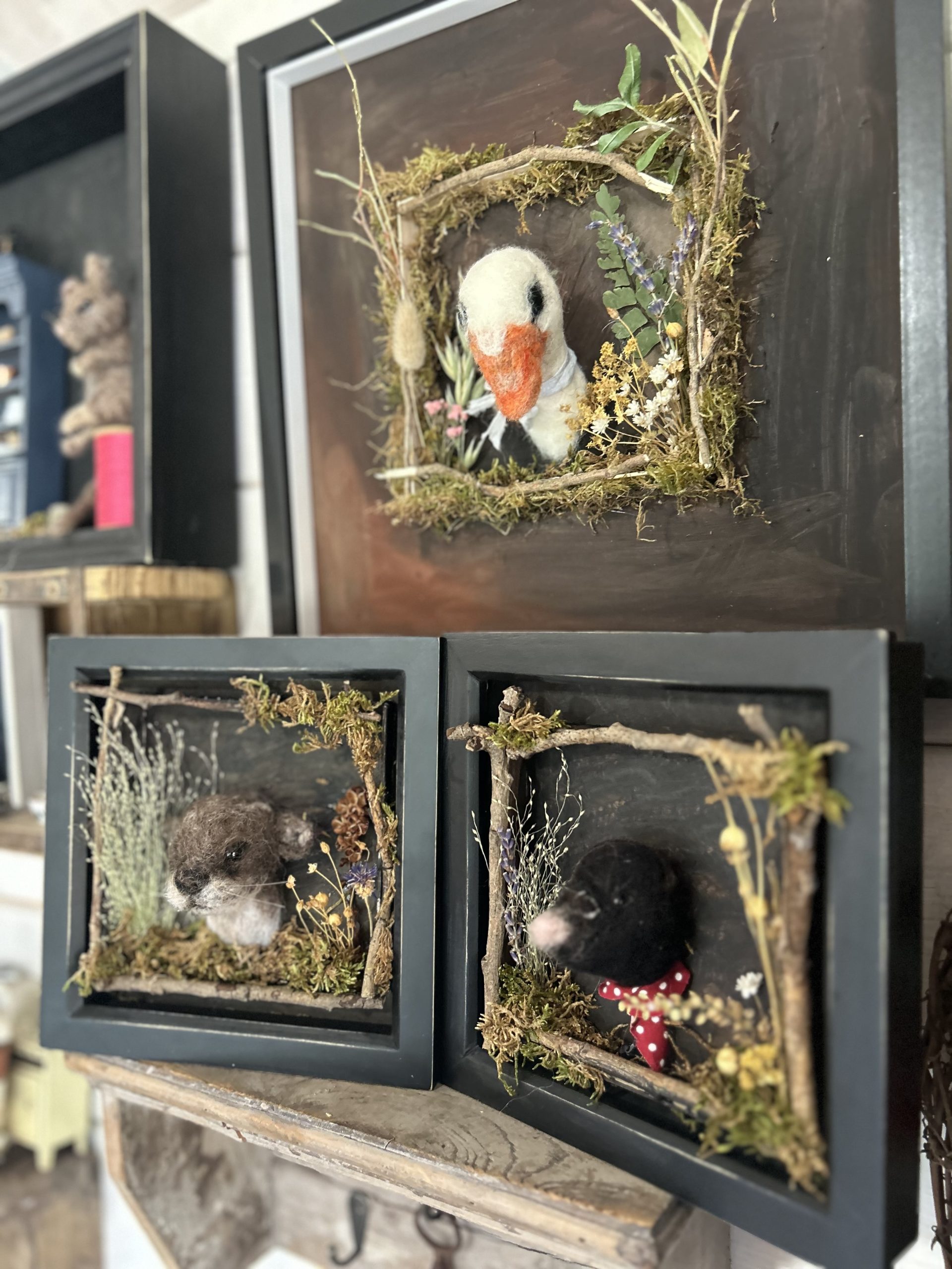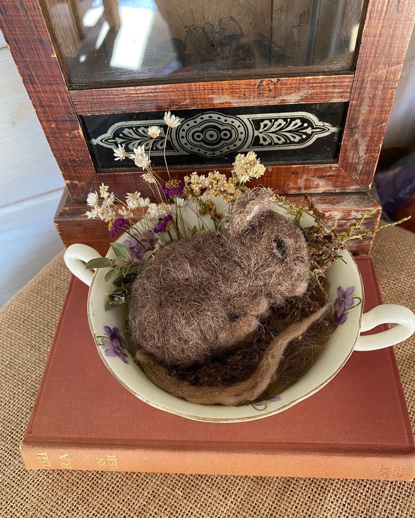 Fibre artist based in Buxton Derbyshire. Creator of quirky animals mixed with vintage kitchenalia. Working from my studio The Menagerie also where i teach needlefelting workshops.
