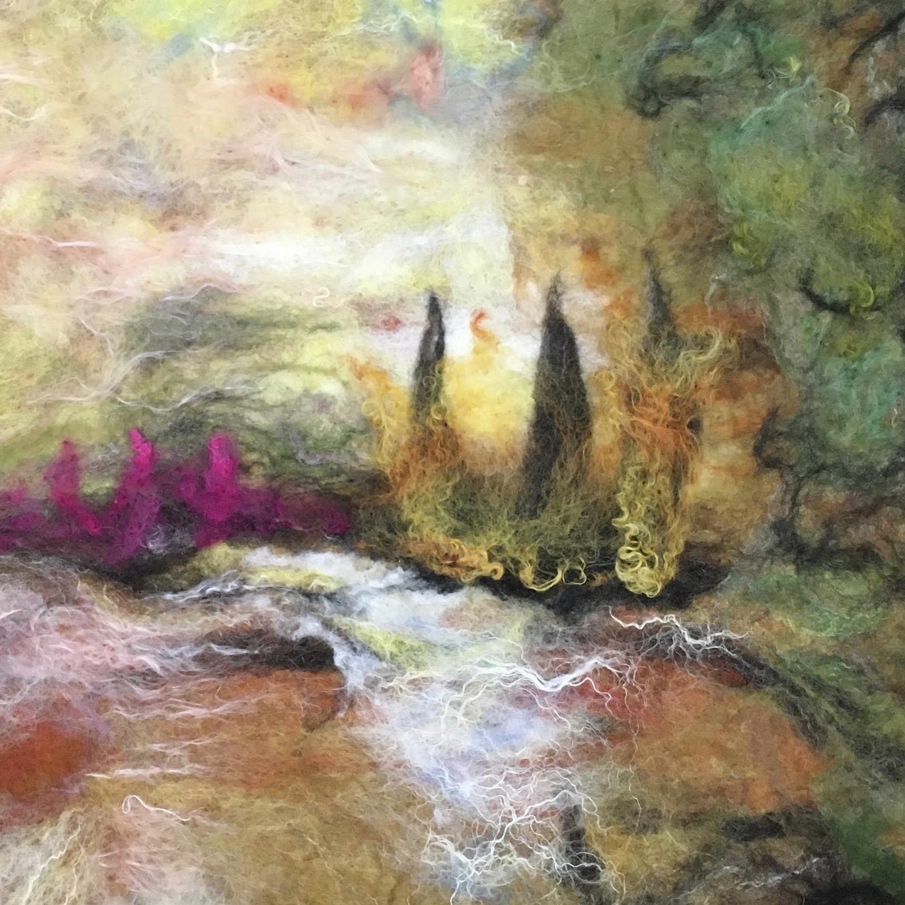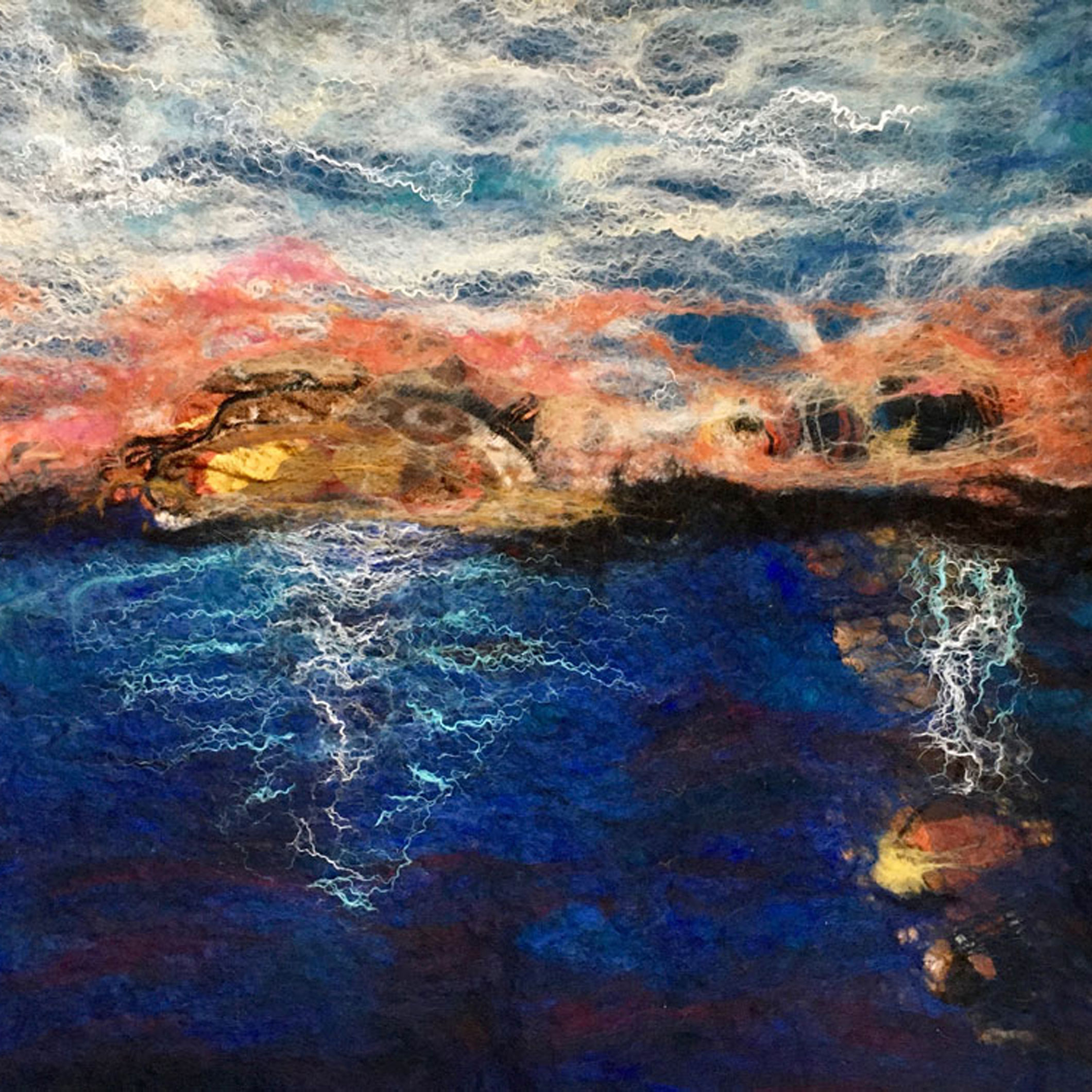 Fibre and mixed media artist creating fibre felted art and sculptures using wool and plant fibres. I design and make a range of felted and embroidered jewellery, available at selected events some in my Folksy shop. I love exploring vibrant colour ways, textural surfaces and three dimensional forms. I make needle felted animals to commission. If you would like a specific animal or pet creating or a piece of fibreart for your house or office space, Please do get in touch to discuss your ideas.I have a lovely studio in Fletchers Mill, Dean Clough, Halifax, West Yorkshire where I make my fibre artwork and run regular workshops/courses in wet felted paintings, Nuno scarves and Needle felted animals.