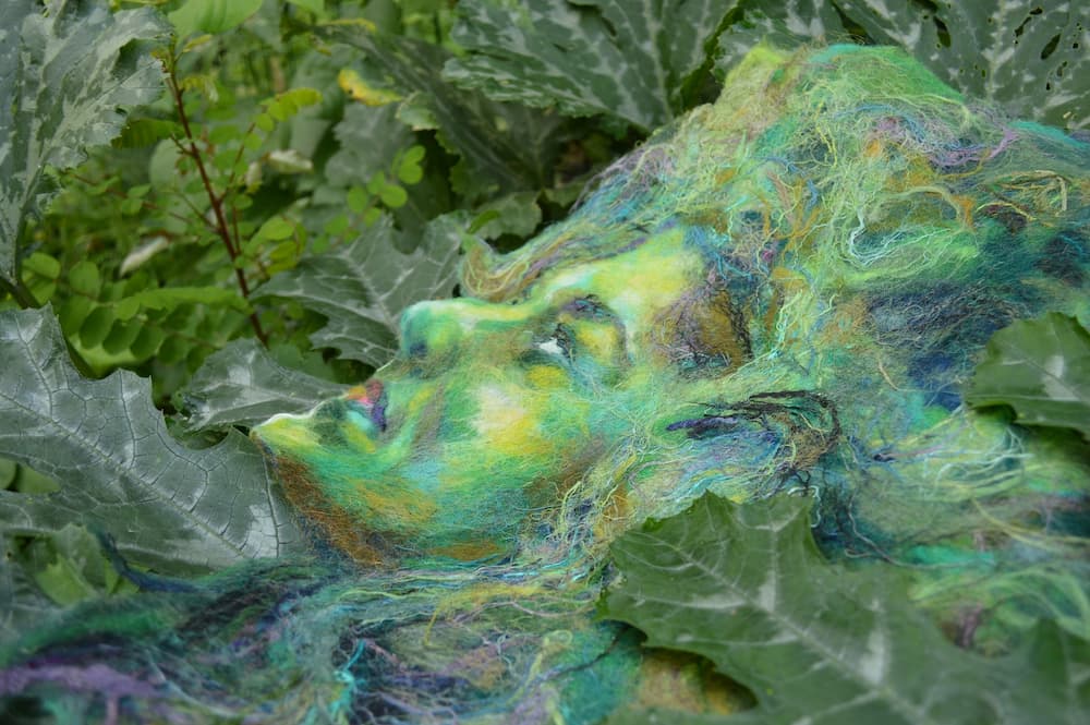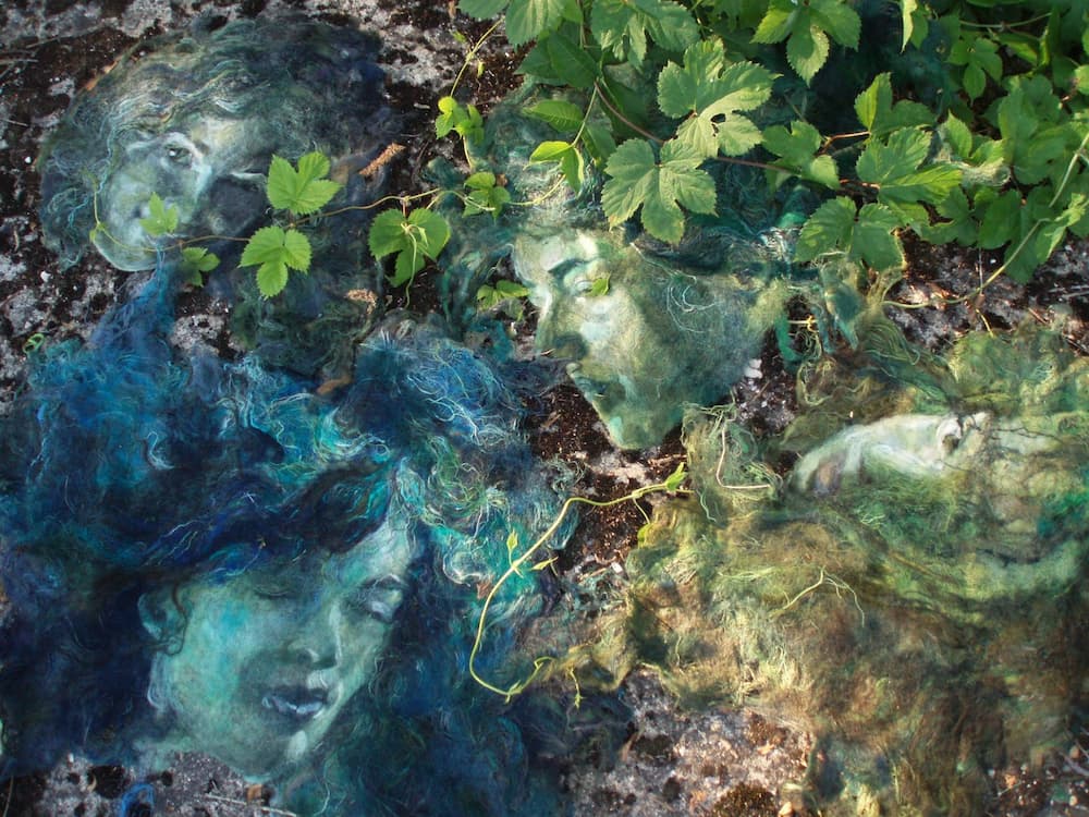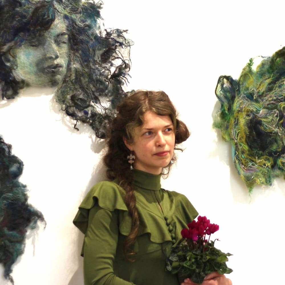Most of the works presented in the exhibition are created using this technique. I experience the felting process much like watercolor painting: blending shades of color and layering them one upon another, the creative result always brings an element of unexpected surprise.