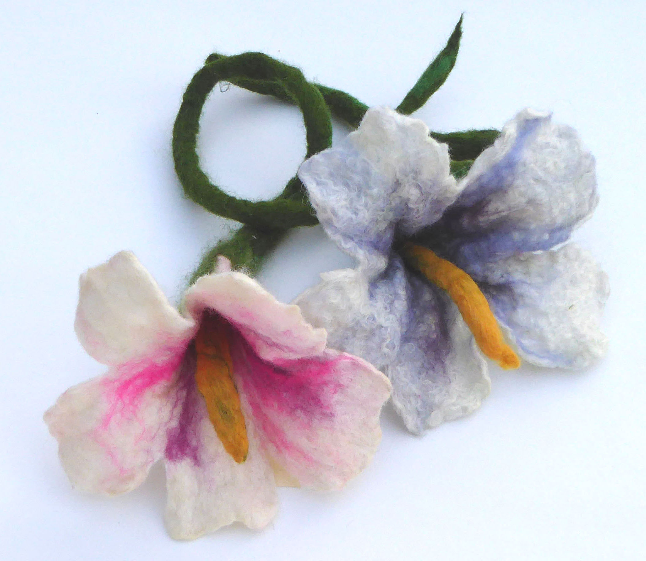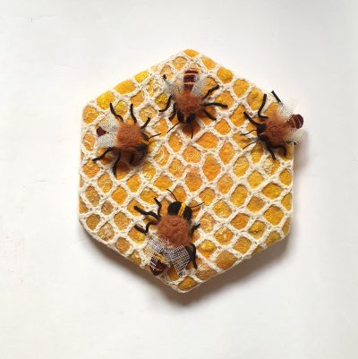 Nancy Shafee's felt work is defined by her use of strong colour and largely floral subject matter. A former fashion designer, then journalist, publisher and PR consultant, Nancy returned late to her crafting after attending a feltmaking workshop in 2009 and 'getting hooked'. Nancy is a past Chairman of the Surrey Guild of Craftsmen and sells her work under the names of Flights of Fantasy and Well Urned Rest. As well as her wide range of fashion accessories, wedding flowers and home decor designs, Nancy also teaches feltmaking to individuals and to groups. She is happy to work on commissions.
