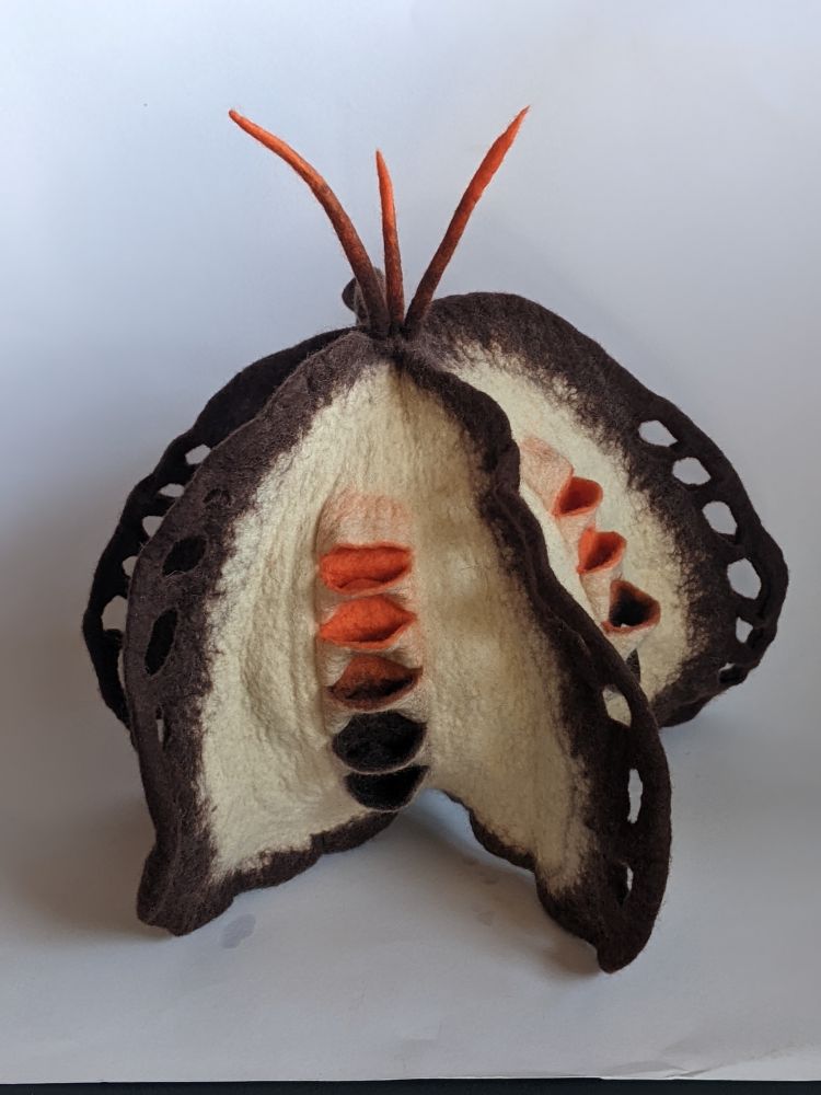 I have been felting for about 5 years now. I started with a background in ceramics, so when I saw that I could create cute little animals that actually were soft and cuddly, I fell in love with needle felting! More recently I have become fascinated with sculptural wet felting and the 3D form. I am a mother of 4 teenagers living in rural Pennsylvania.