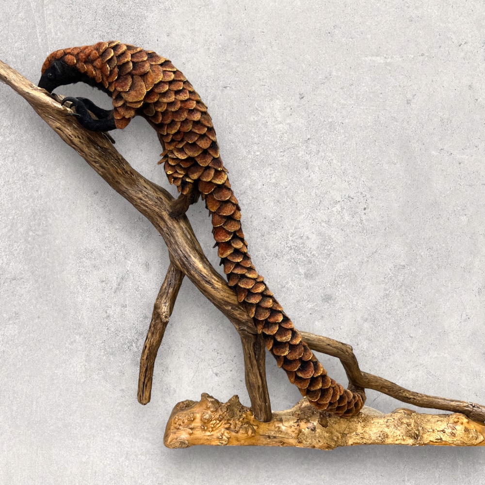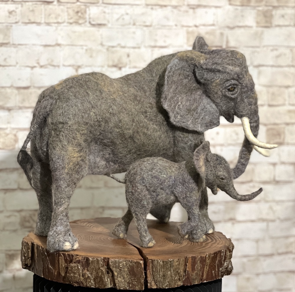 I have had a life-long connection with animals — from the first family Boxer dog that protected me in my crib to the magnificence of Africa. It seemed like an unkind joke that I was unable to draw or paint this love that I felt … until I found sculpture. My love was in 3D! The medium of fibre allows me to express everything that I see and feel. I start with technical studies of the skeleton, muscles and skin/coat, and then I am free to get to know their character.