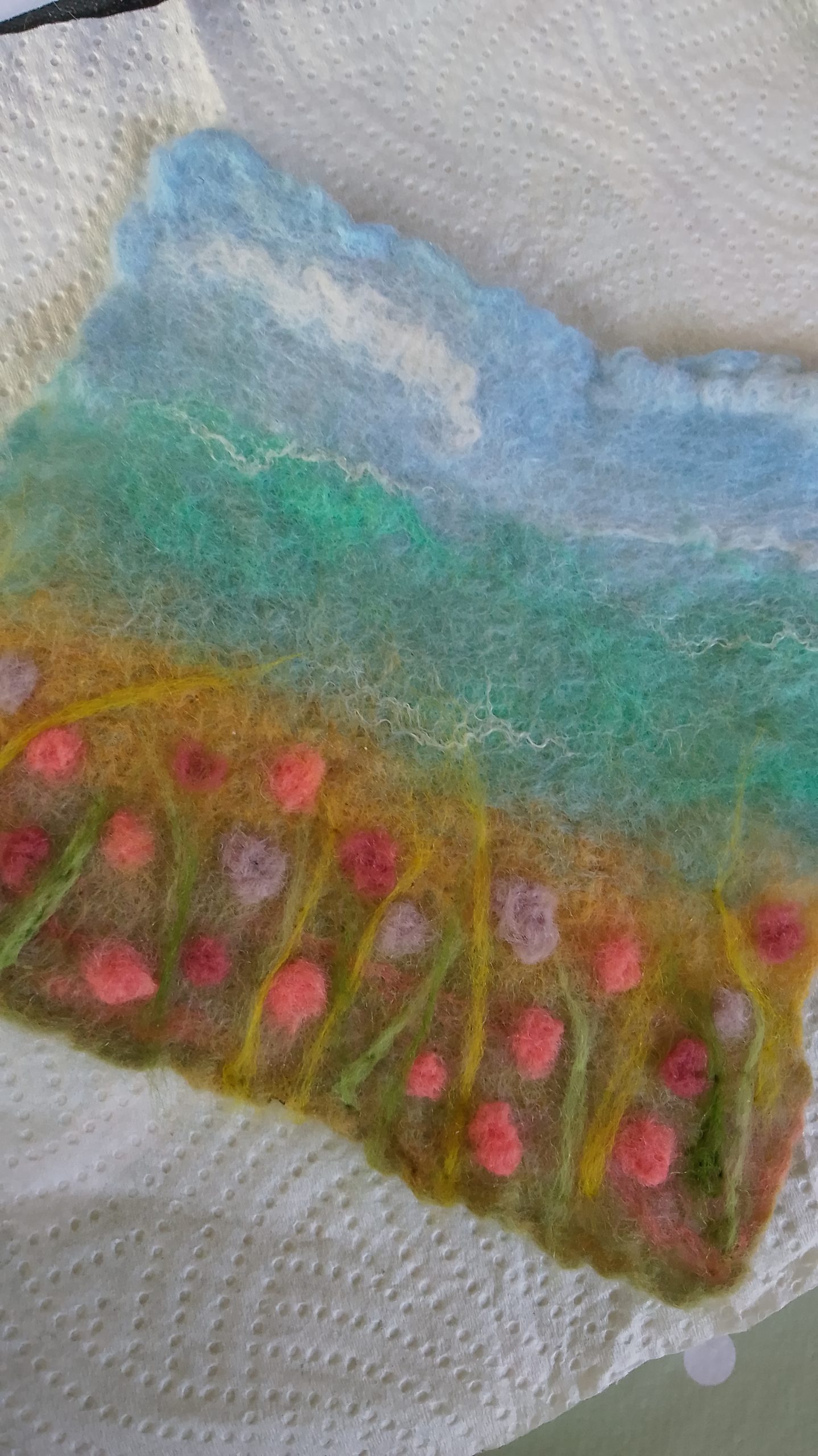 I have been making felt for over 20 years, since I was shown how to make it at a residential conference when I was a young leader with girl guiding, I fell in love with the process of wet felting and continued to use this process for my A-Level art projects and beyond.Over the years I have shown lots of people of various ages how to wet felt. My own children enjoy felting and often sit with me when I'm working on a piece.I have a background in fine art and textiles, so for me felting is like painting with wool.