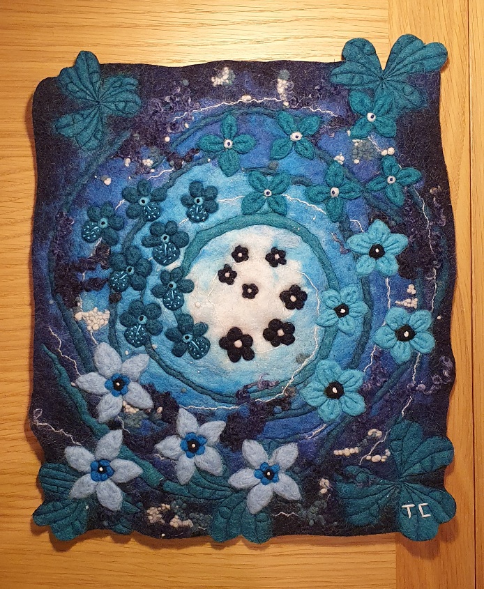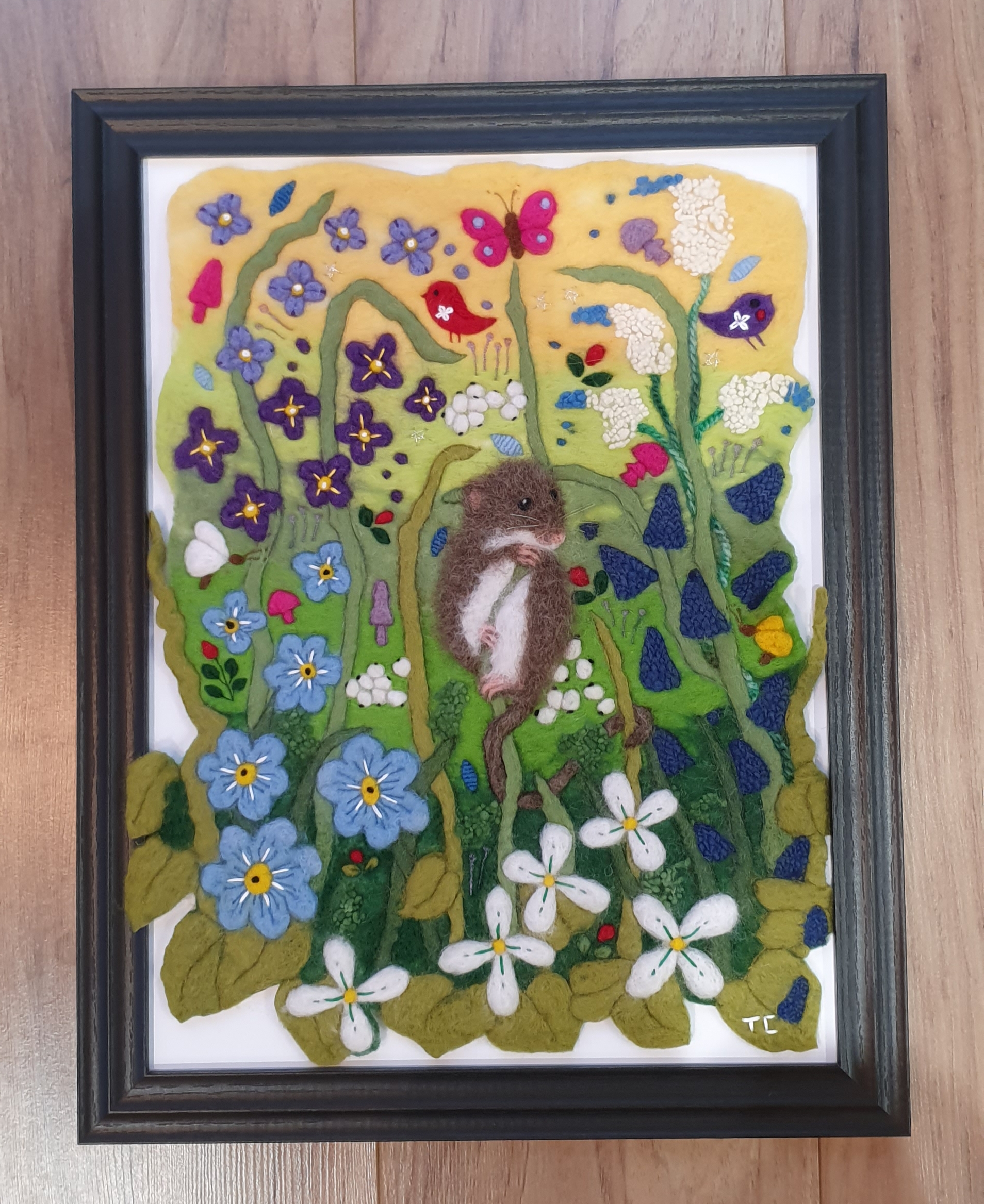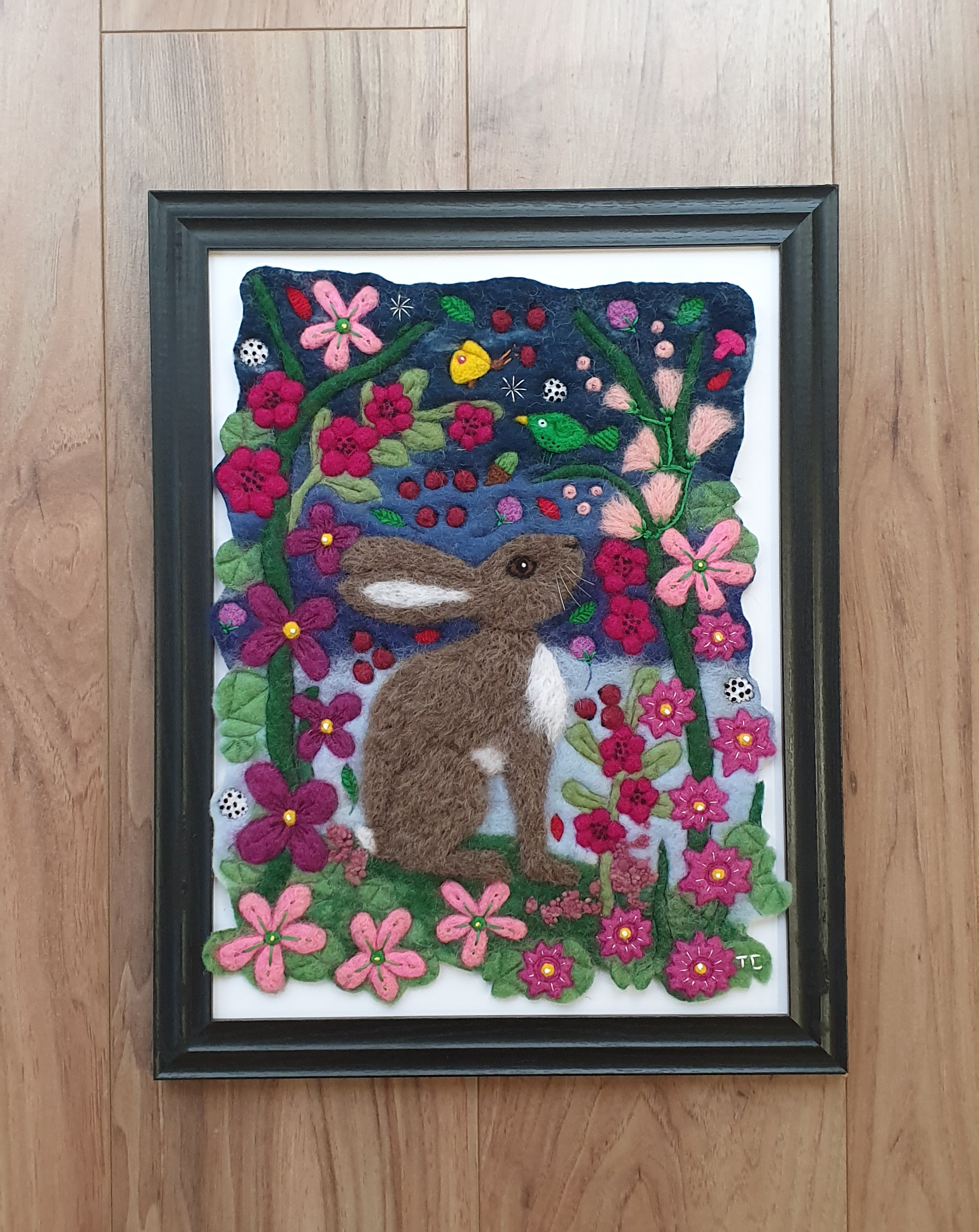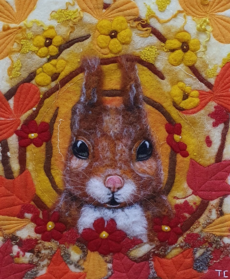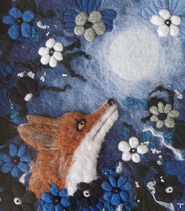 I use the wool to 'paint', the needle felting to refine the detail, the free-motion machine embroidery as the drawn line and the hand embroidery to embellish.