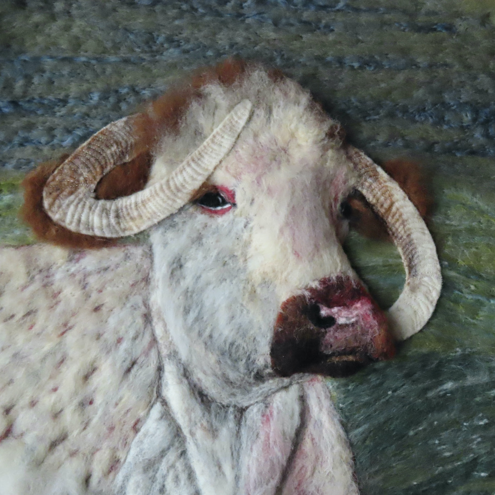 I needle felt landscapes and animal portraits from a studio overlooking Ullswater in the English Lake District, drawing inspiration from the view and local walks. I work from my own photographs or those provided by clients to create realistic pictures with a three-dimensional texture which helps capture something of the essence of the animal or landscape portrayed using locally sourced fibres. I carry out every stage of processing from raw fleece to framed final piece myself. I am a member of the the Rare Breeds Survival Trust, the Hare Preservation Trust, Cumbria Wildlife Trust and the Penrith and District Red Squirrel Group. I use my work to raise awareness of endangered breeds. Rare breed sheep are needle felted with the right wool to give authenticity.