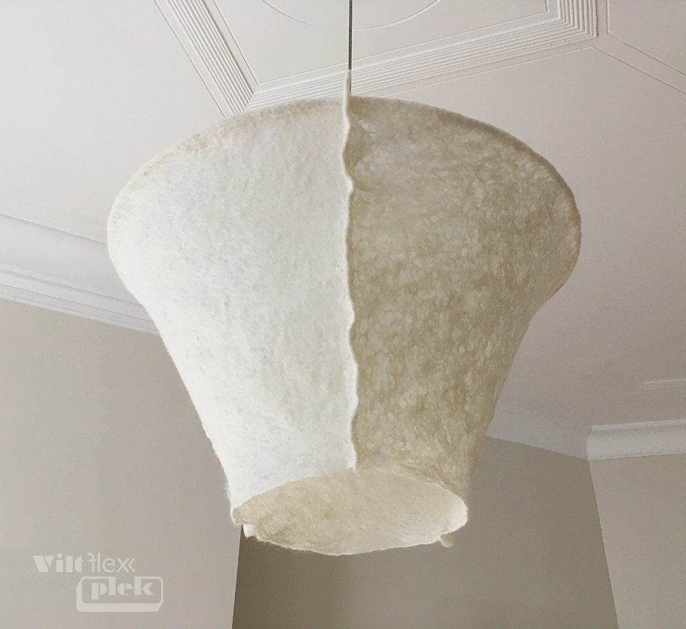 I studied graphic design at the Royal Academy of Art in The Hague, in the Netherlands. A few years after my graduation in 2001 I discovered felt making. What started as a hobby is now for fifty percent my living, next to the graphic designing. The latter is behind a computer, but with the wool I can work with my hands, feel it, shape it and I am at the end of the line developing, as with graphic design there is the printer, where the colours never have the same brightness on paper as I created them on my screen.The graphic designing and felting seem two complete different worlds, but they get tangled like the fibres in felt. Since 2018 I do the layout for the magazine of the Dutch felt association ViltKontaktGroep and designed the logo. The other way around, I made different felted lamps and other objects for customers I designed a corporate identity for earlier on.I am always searching for the different possibilities of what to create with felt. I like the idea that I make my own lamp, wall covering, blanket, laptop cover, jacket, slippers, gloves, and more with sustainable material from around the corner. It gives a warm atmosphere to a space. The warmth the felt gives when wearing it. But also in art it is a generous tool to express myself, to leave a message of awareness.My message to the world: enjoy the pleasure of making your own (useful) things with your own bare hands. Back to the basics. The peace it gives you through the rhythmic movement. Work with natural material that hardly leaves a footprint. And also which I often forget, because it is so common as a regular felter, that you make your own textile out of loose fibres.For me the wool is still after all these years a magic material of which I can’t think of another that is so flexible in use and shape. And there is still so much to enjoy and explore, for myself and also to inspire and teach others.