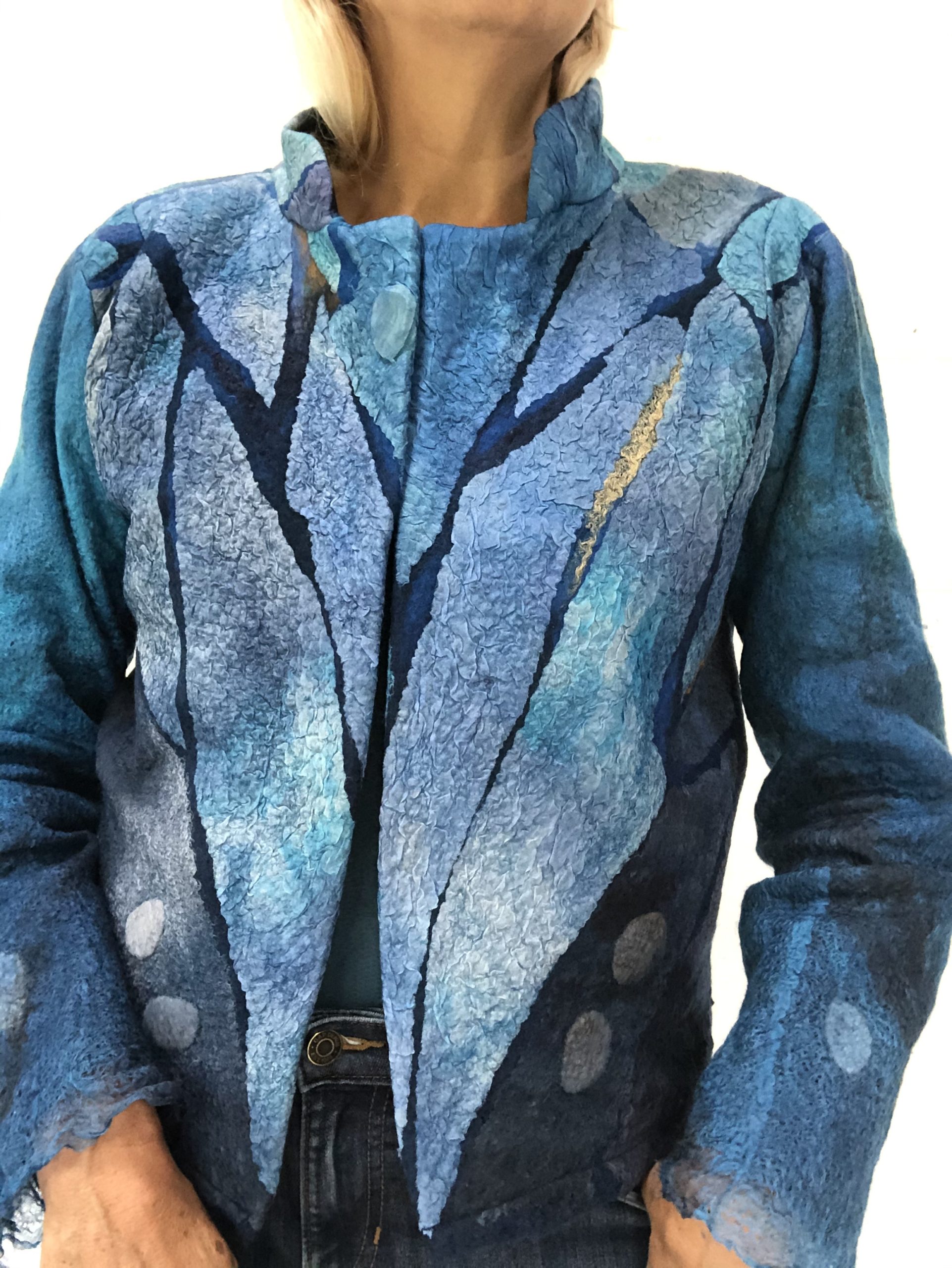 Vivienne is an experienced designer Feltmaker and Tutor , exhibiting and teaching throughout the uk specialising in fine Nuno Felt clothing with hand dyed silks, super fine merino and some British wools, available for teaching workshops and commissions , please email me to discuss.