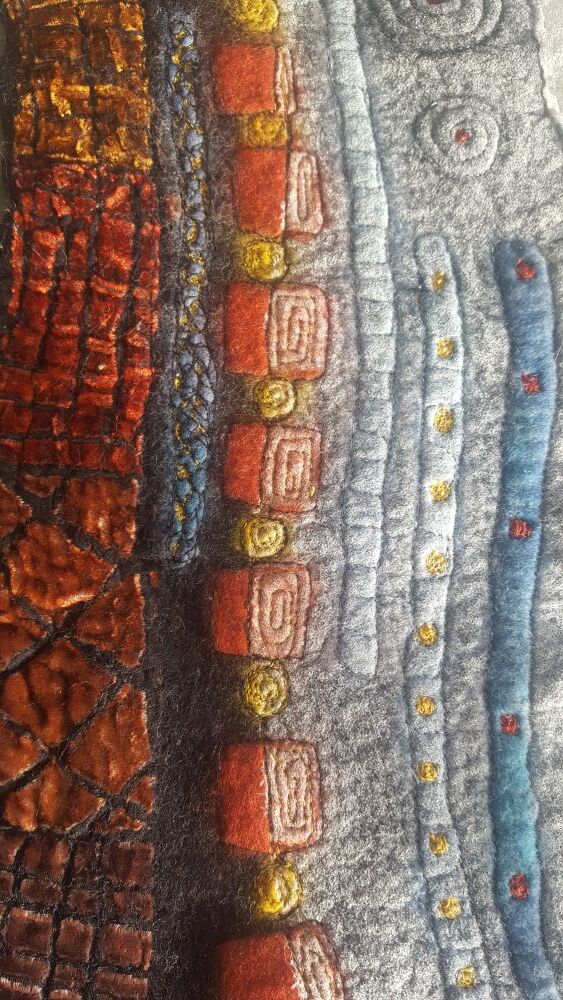 I produce original, handfelted textile artworks - homewares, wall art, and wearables. My works are sold in galleries in Australia. I also work regularly on exhibition work. I am an active textile practitioner –always studying and honing my craft. I love to learn from others and also enjoy opportunities to mentor others in the textiles field. I have facilitated workshops with professional International Felt Tutors from my Studio, The Felt Studio as well as teaching my own personal classes. I like to think of my feltmaking work as an adventure and always try to experiment and play extensively within my chosen medium. I love my work! My two classes 50 Shades of grey Felt! and Textures and Patterns in Nature are both open for registartion through my website.