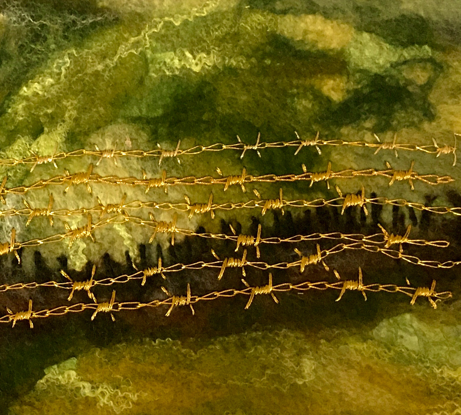 Inspiration: I made this piece as part of an exhibition ‘Echoes of Remembrance’ in my home town. It depicts the landscape of the trenches in modern times showing layers of history, where time has overwritten violence with normality without fully erasing it.