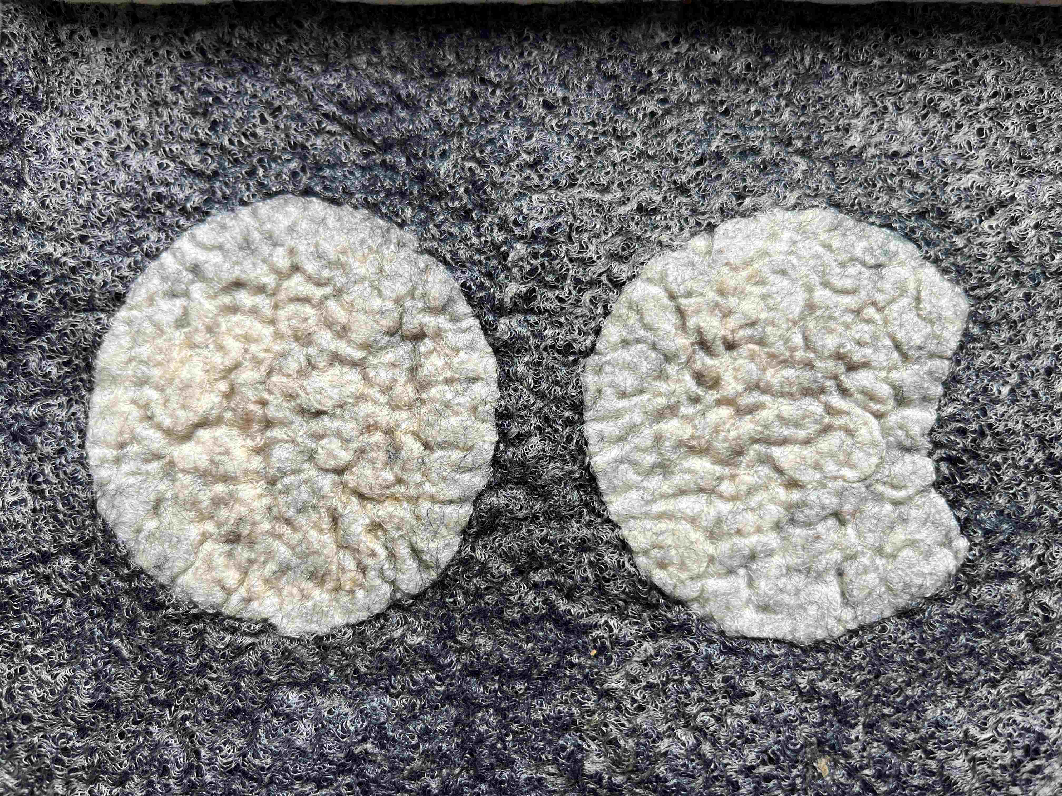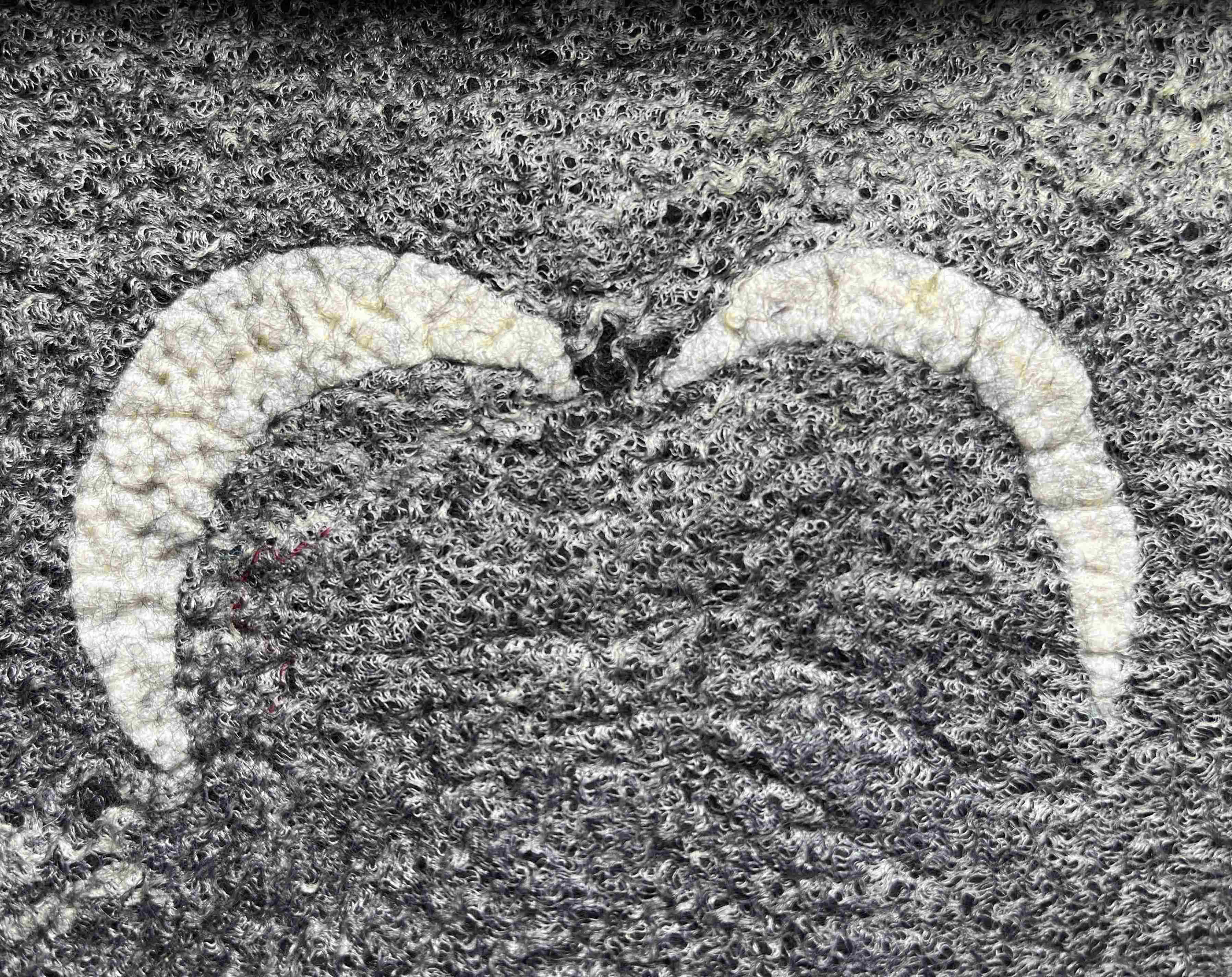 Materials and Techniques: Wet felted 19 micron merino, cotton wadding, Margilan silk