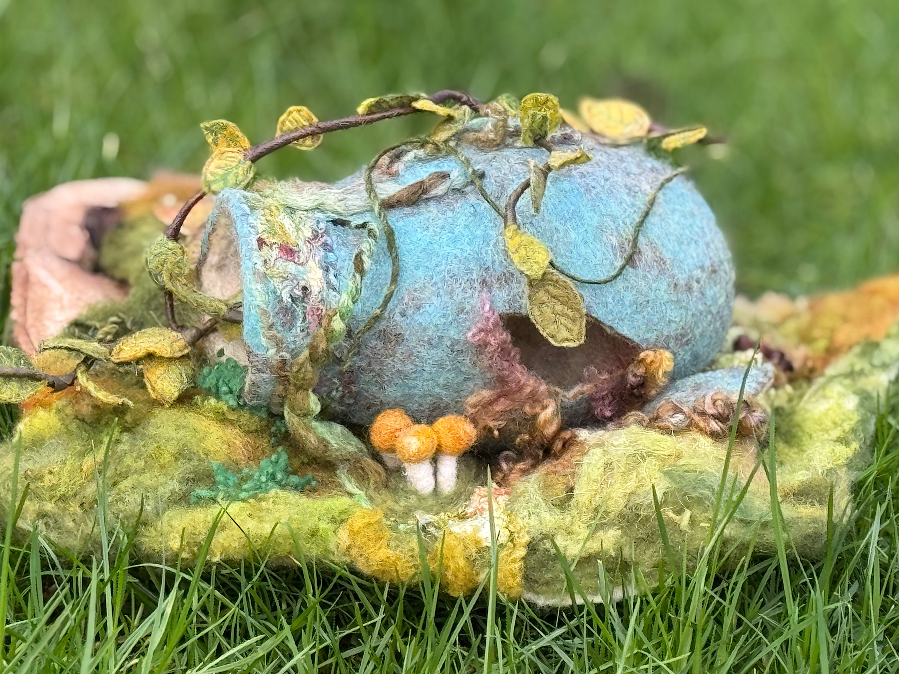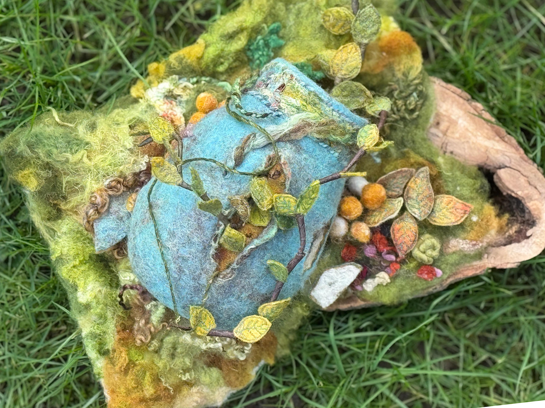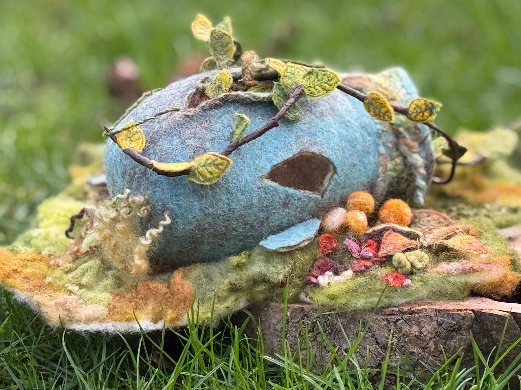 Materials and Techniques: Various wools using techniques of wet and needle felting and free-machine embroidery