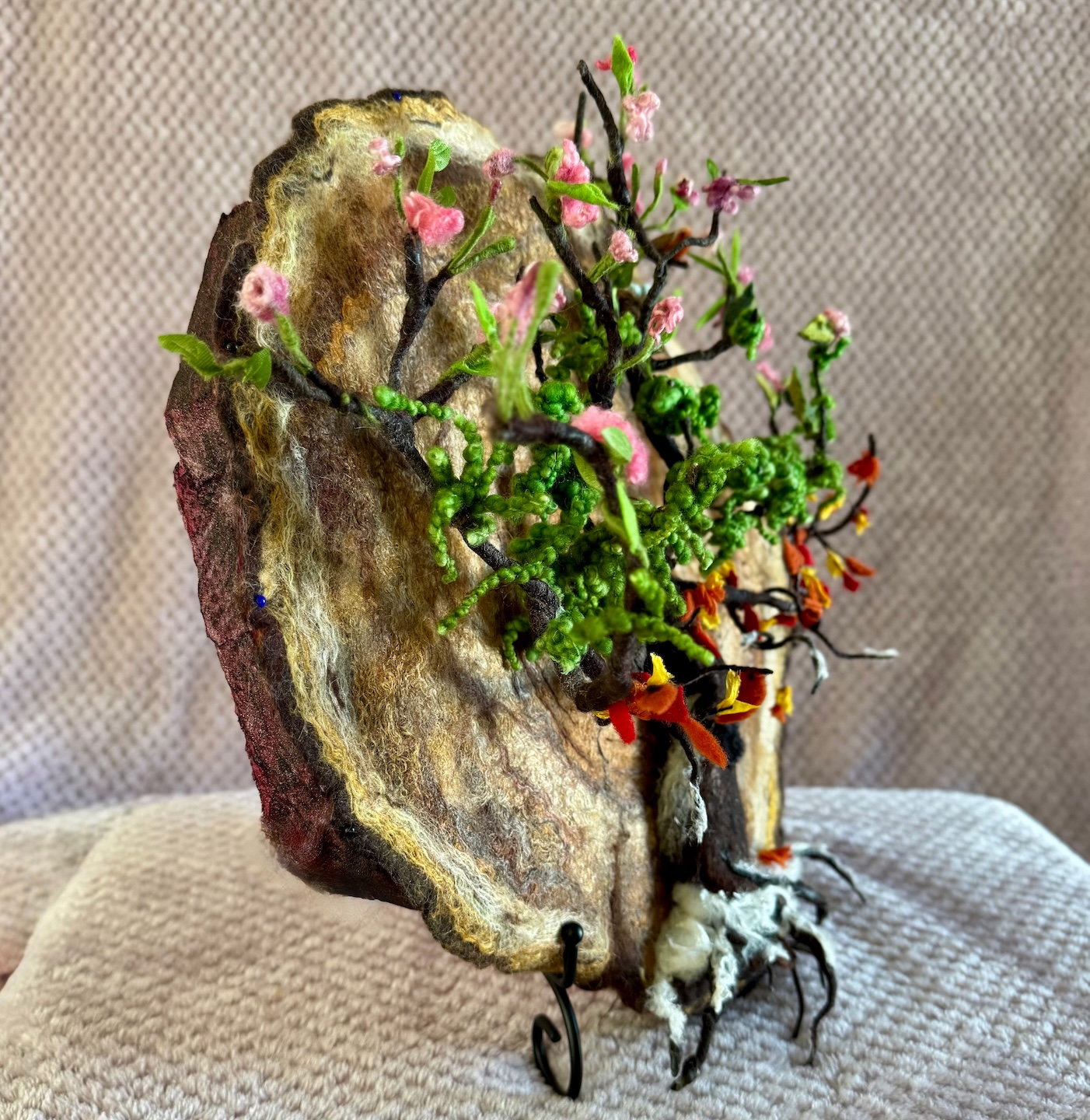 Materials and Techniques: Wet felted wool and silk, Needle felted wool over a wire armature