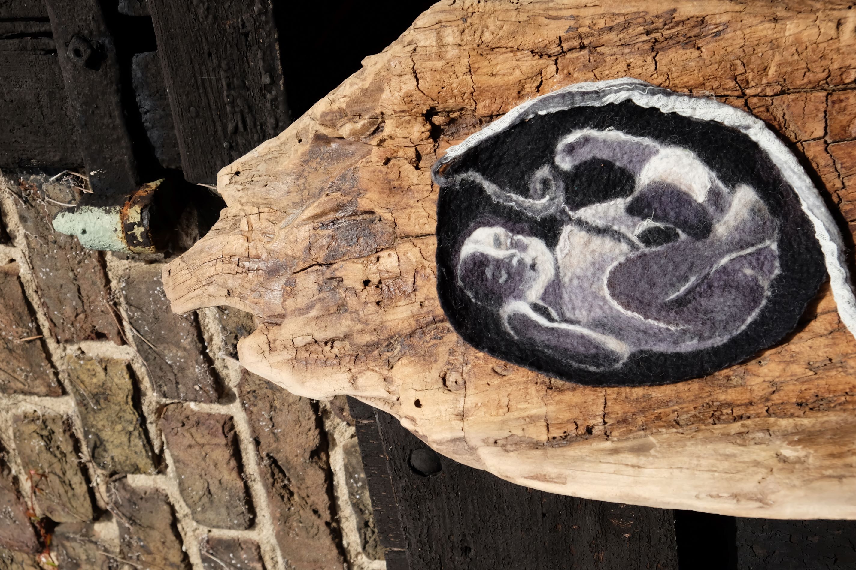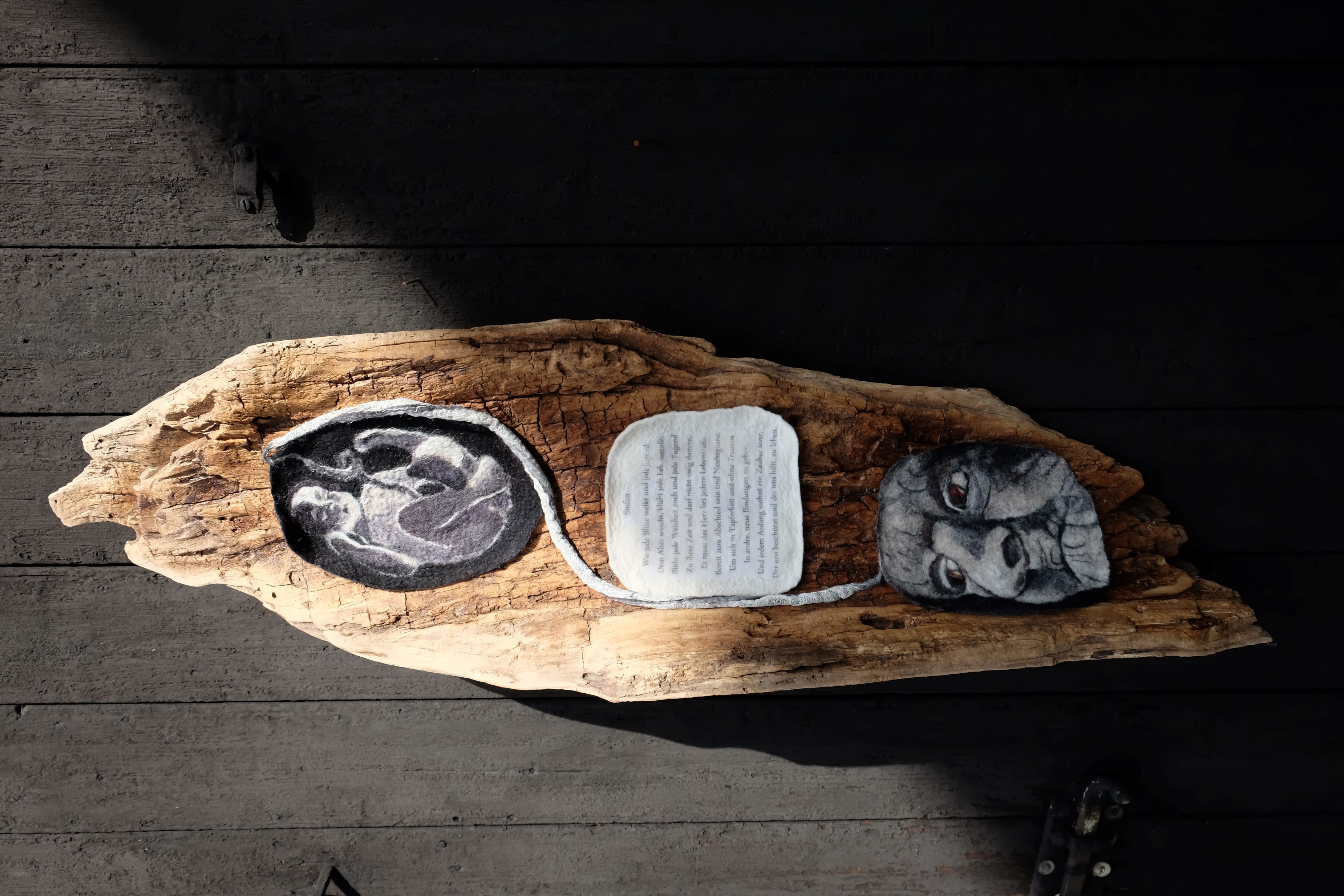 Inspiration: Time as the development of life from fetus to old woman. Connected by an umbilical cord that encircles Hesse’s poem ‘Steps’: As every flower fades and every youth yields to age, so every stage of life, every wisdom and every virtue, blooms in its and cannot last forever…