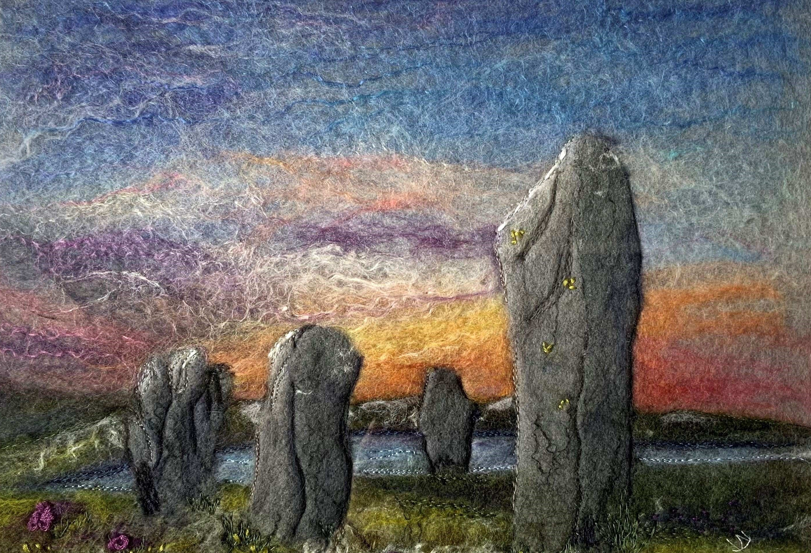 Inspiration: The Ring of Brodgar is a very special and inspiring place. It sits in a landscape full of reminders of our ancient history. One can only wonder at our ancestors skills to build such monumental structures. With the sunset behind it becomes even more magical. Whilst we can never be sure of their purpose, many stone circles are thought to be celestial calendars marking the winter or summer solstices.