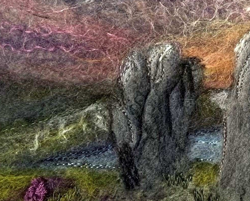 Materials and Techniques: Wet felting, needle felting, machine and hand embroidery