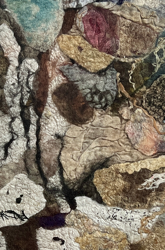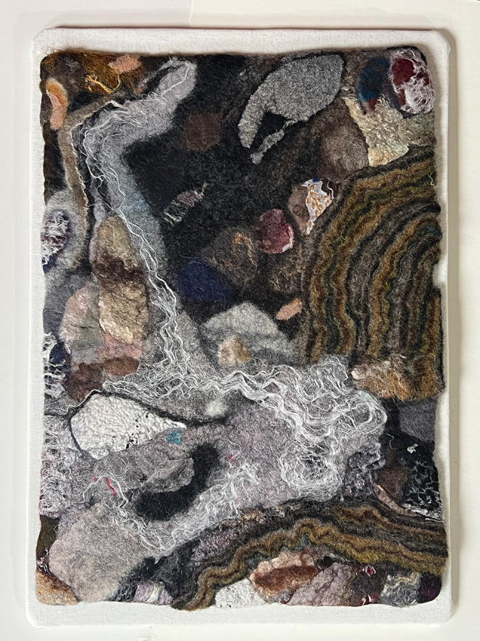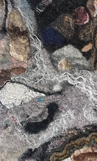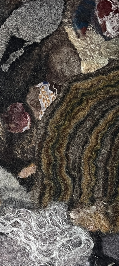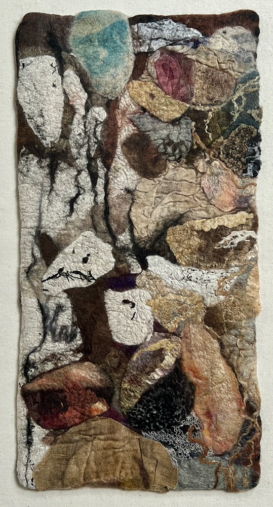 Materials and Techniques: Wool, linen and silk fibres, paper, woven fabrics (dyed and printed), felted