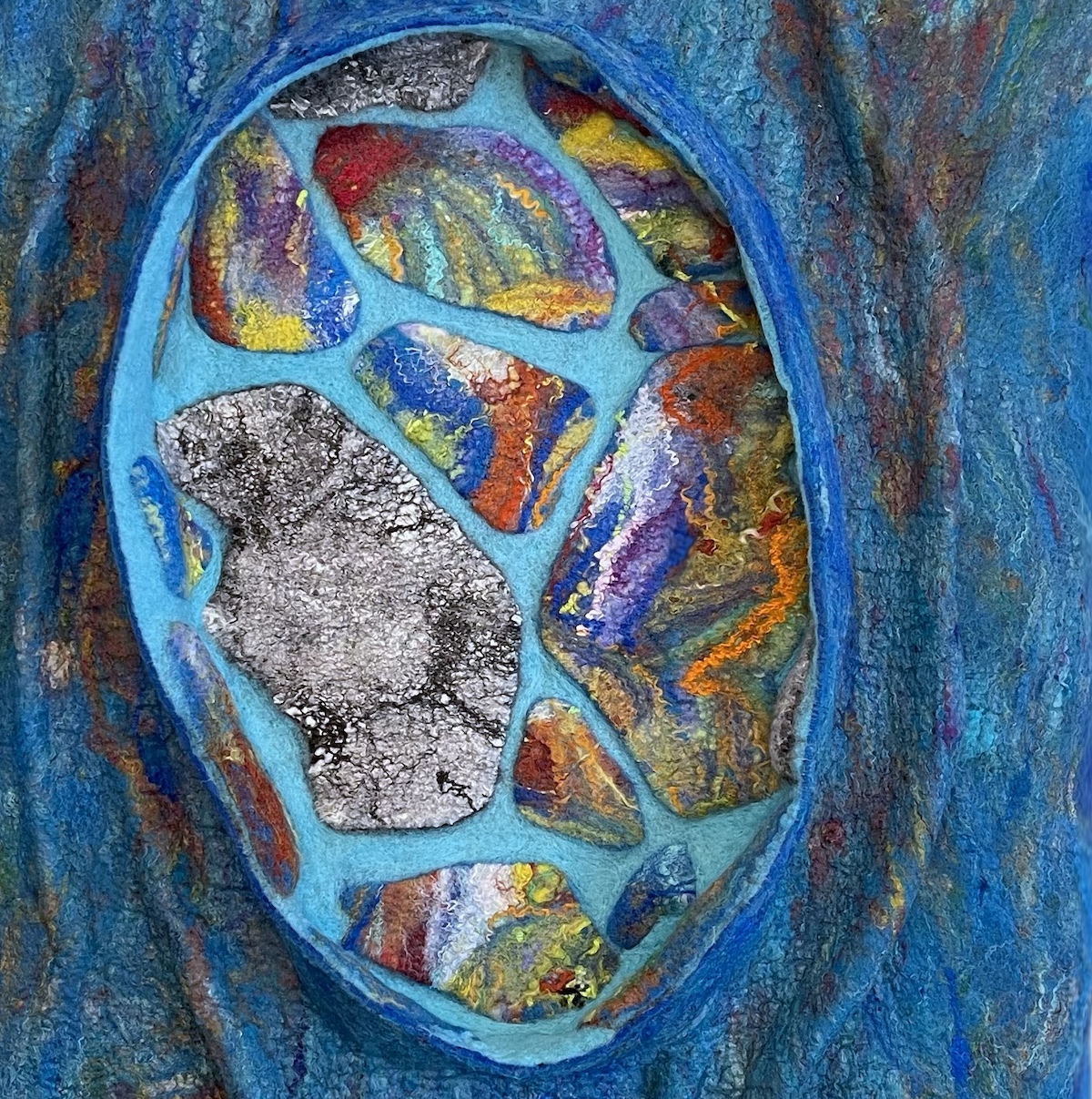 Inspiration: My work”Introvert” explores how identity is shaped and revealed through time. The subdued outer surface suggests layers formed gradually — a quiet protection developed through lived experience. Beneath it lies a vibrant interior, representing emotional richness and accumulated memory. In a culture that values immediacy and constant visibility, introversion unfolds more slowly. The work reflects on the time required to understand depth, and on how true complexity is often revealed only through patience and attention. size: 24″x32″